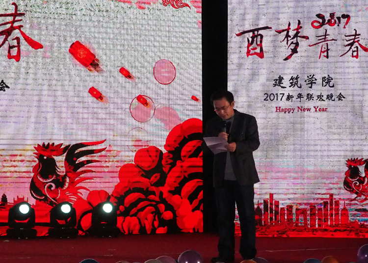 晚会以汇聚浓浓祝福的视频开场,播放了来自全院师生及其他学院学生的贺语,拉开了晚会序幕。院长修春亮为全院师生做晚会致辞并代表学院向全体师生致以新年问候。