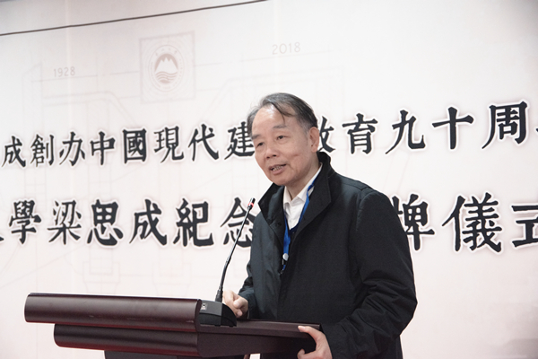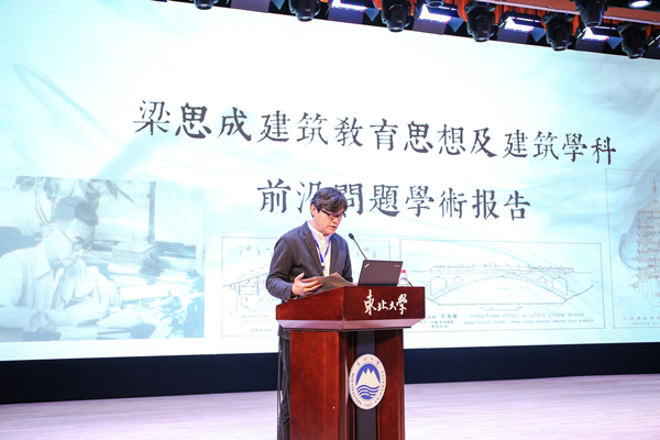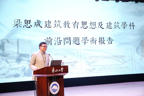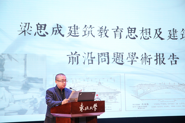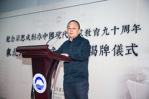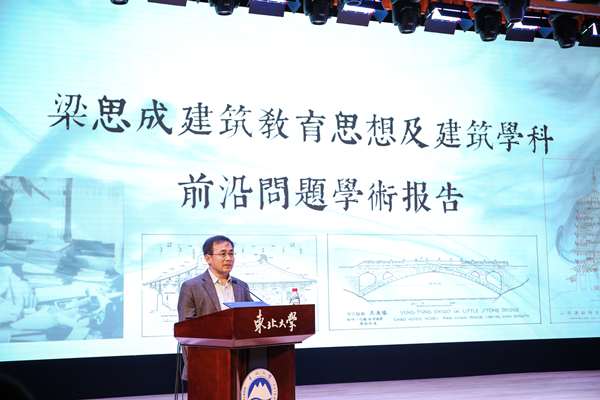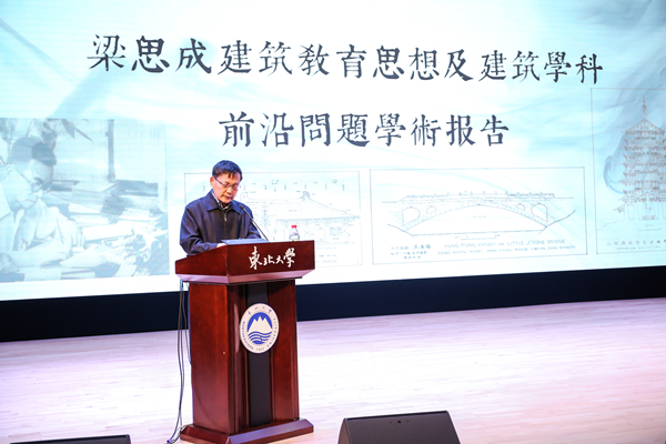 何镜堂院士致辞表示东北大学历史悠久,人才辈出,又是中国现代建筑教育思想的奠基人梁思成先生学成回国第一站,他强调梁思成先生对建立中国现代建筑教育及中国古建筑的研究和实践中做出了杰出的贡献,是所有人光辉的榜样。他寄语广大青年学者通过这次活动学习梁思成先生的思想,继承梁思成先生的建筑事业,为创建有中国特色的建筑学科不懈努力。