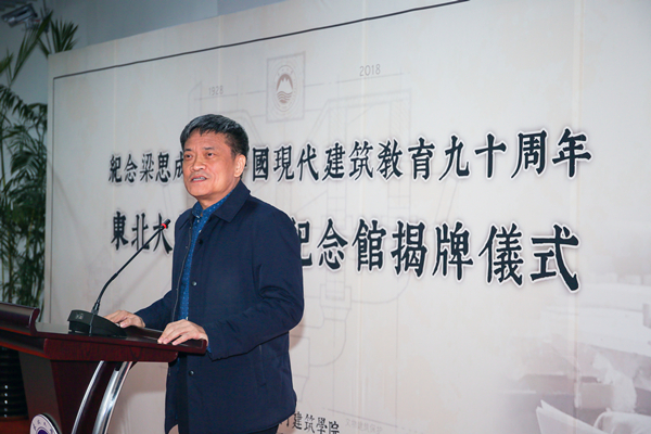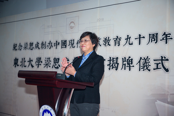 东北大学党委书记熊晓梅作了重要讲话,她首先向出席揭牌仪式的所有嘉宾表示欢迎,向倾力协助建设东北大学梁思成纪念馆的院校、单位表示衷心的感谢。熊晓梅指出,东北大学梁思成纪念馆的启用是在进一步传承和凝聚东大的文化和精神,只有切实用先生的伟大成就激励人、用先生的优秀精神教育人、用先生的建筑素养启迪人,才能为推动我校一流大学建设注入不竭的精神动力。