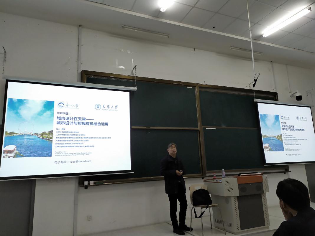 4月17日,“亚洲居住文化理解”系列学术讲座第六讲在建筑学馆A302举办,应李明教授邀请,国家教育部建筑学专教委委员、城乡规划分委会副主任委员、天津大学建筑学院陈天教授以“城市设计在天津---城市设计与控规有机结合运用”为主题为学院师生作学术报告。