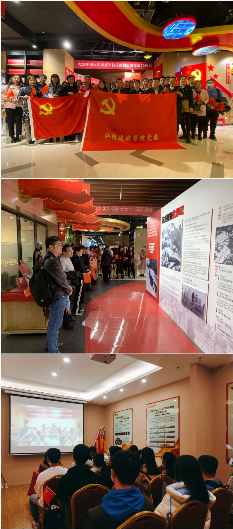 11月11日下午,学院党委开展“铭记伟大胜利·捍卫和平正义”主题党日活动,组织师生党员前往沈阳玖伍文化城观看“纪念抗美援朝70周年主题展”。