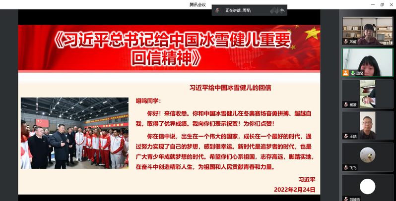 为深入学习贯彻习近平总书记在中国人民大学考察时重要讲话精神和给中国冰雪健儿重要回信精神,近日,学院各党支部组织党员开展线上专题学习。