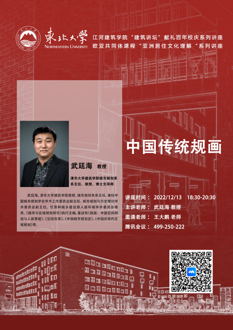 12月13日,应城乡规划系王大鹏老师邀请,清华大学建筑学院城市规划系主任武廷海教授做客华体会官方版网站登录入口“建筑讲坛”(暨献礼百年校庆系列讲座),做题为《中国传统规画》的学术讲座,学院师生100余人参加线上交流。