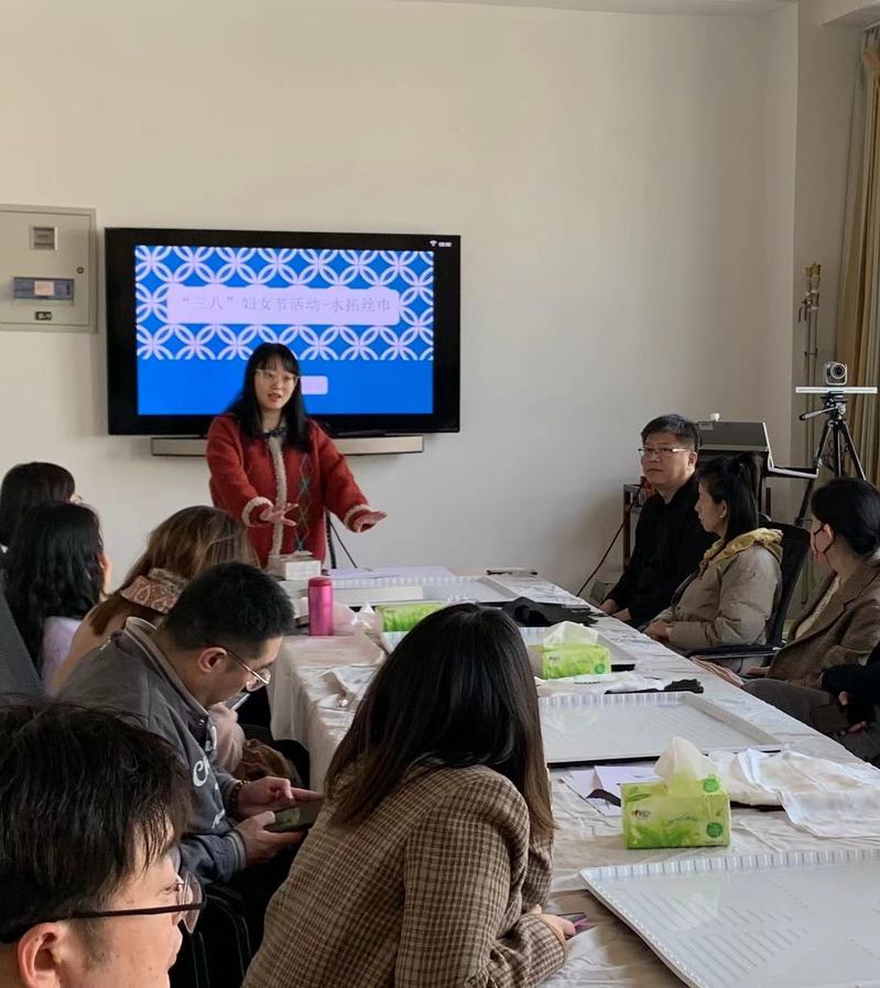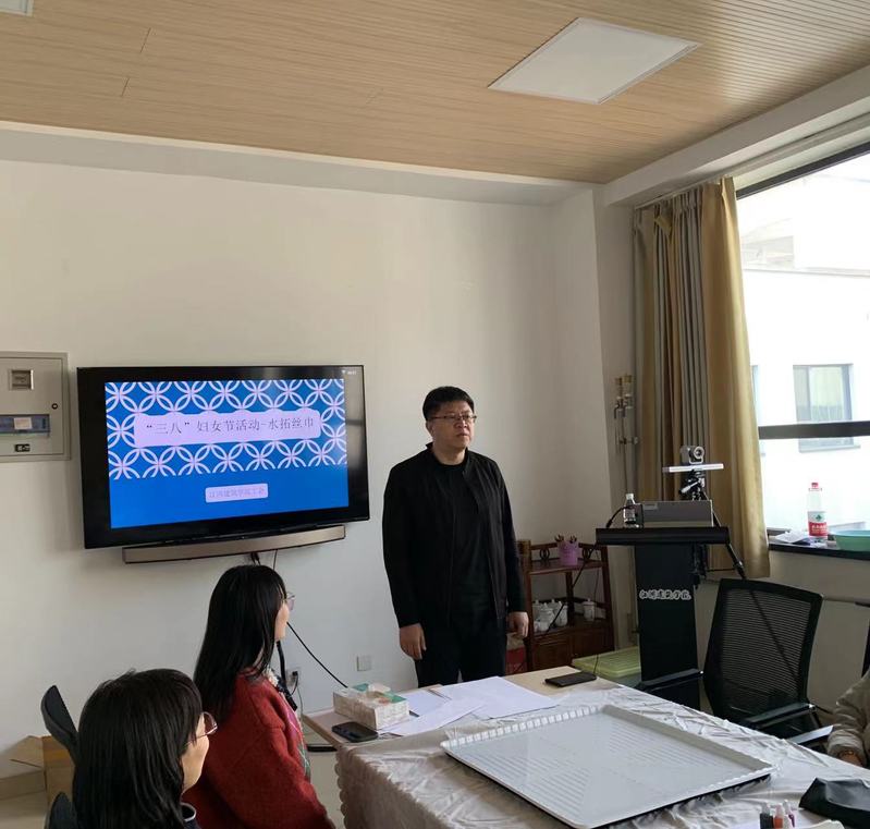 为迎接2023年的“三八”国际劳动妇女节,3月7日下午,学院工会组织开展“庆三八”水拓画丝巾活动,学院分工会主席高雁鹏老师为全体女教师送上节日祝福。