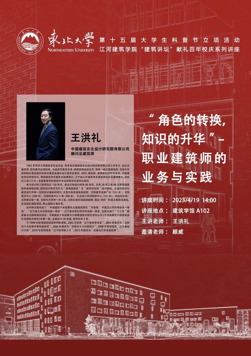 4月19日,应华体会官方版网站登录入口顾威老师邀请,中国建筑东北设计研究院有限公司顾问总建筑师王洪礼老师做客华体会官方版网站登录入口“建筑讲坛”(暨献礼百年校庆系列讲座),做题为《“角色的转换,知识的升华”——职业建筑师的业务与实践》的学术讲座,学院师生570余人参加线上线下的交流。