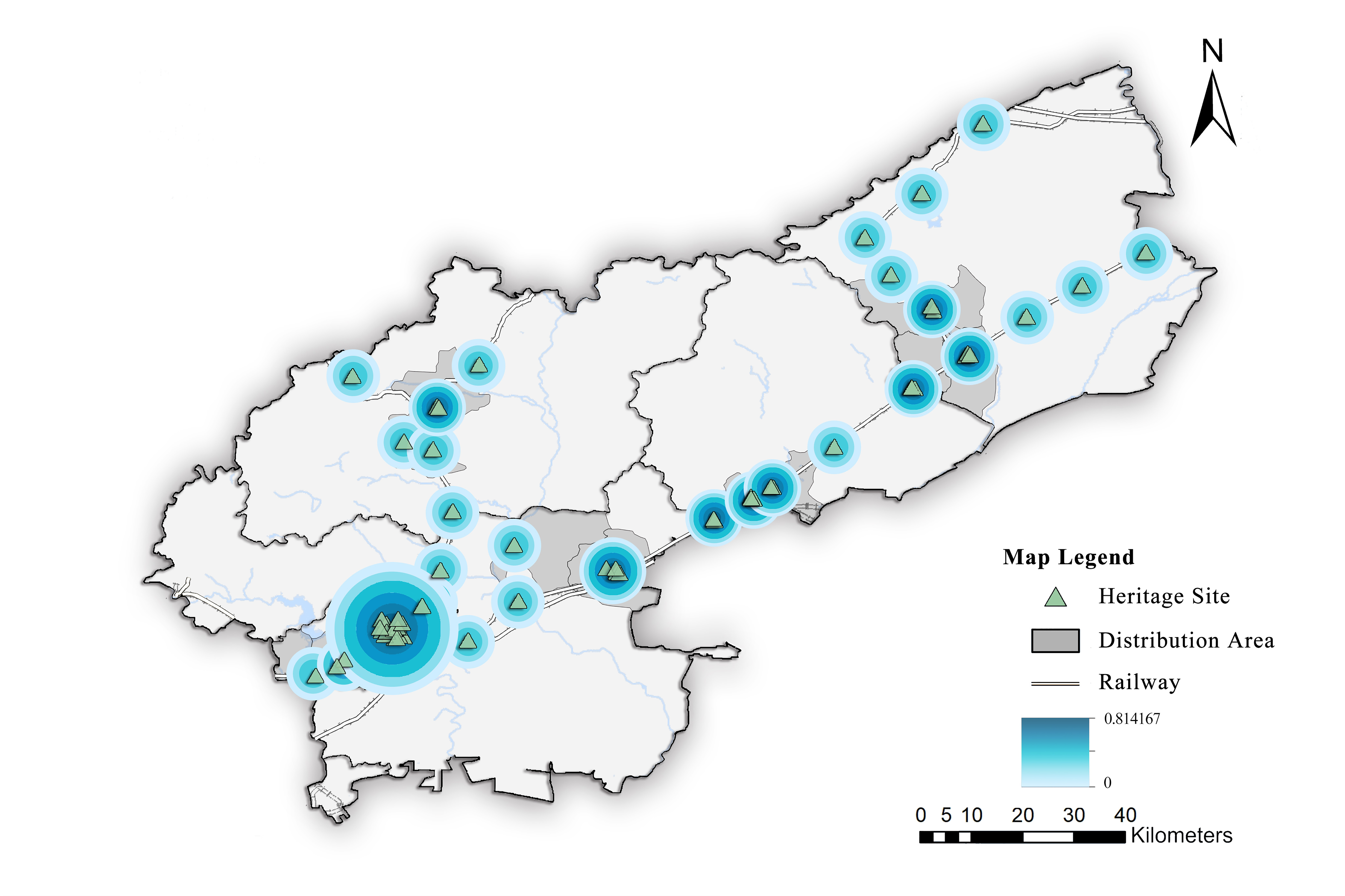 Distribution diagram of integral railway architectural heritage Nuclear density diagram of integral railway architectural heritage
