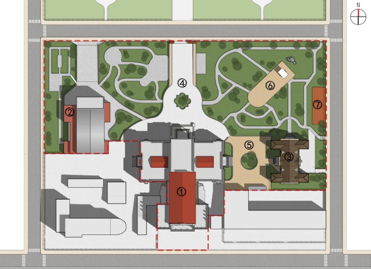 Overall layout of construction site environment of Jinzhou Railway Cultural Palace Composition system analysis diagram of Jinzhou Railway Cultural Palace