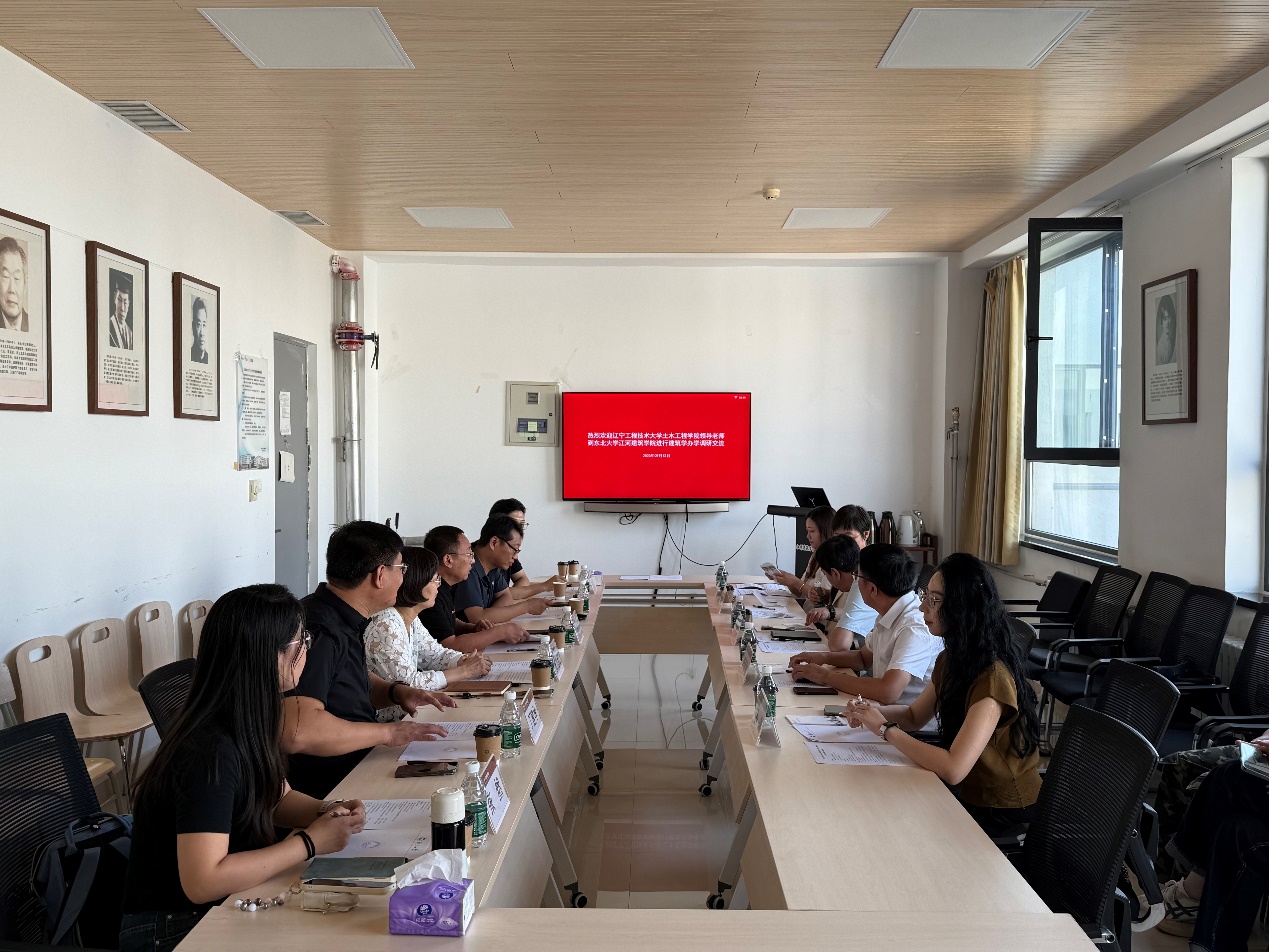 2025年09月13日下午,辽宁工程技术大学土木工程学院副院长贾宝新、副院长李喜林、建筑系党支部书记廉凤梅、建筑系主任于晶淼、建筑环境与能源应用工程系副系主任褚琦一行五人到华体会官方版网站登录入口开展建筑学专业高等教育办学调研交流。华体会官方版网站登录入口党委书记马静涛、副院长张九红、院本科教学负责人席天宇、建筑系主任刘哲铭、建筑系副主任张然出席交流会。本次会议在东北大学浑南校区建筑馆407室举行,会议由我院建筑学专业负责人丁建华主持。